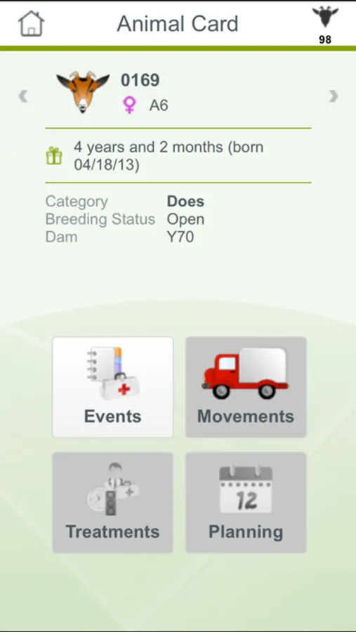 Consult the complete historical information for an animal at any time.