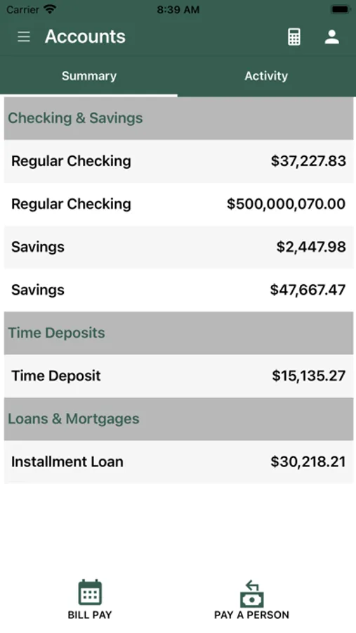 **Online customers must first setup transfer and bill pay accounts prior to using these features.
