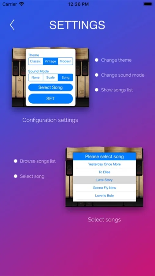 1. Three different Piano Keyboard themes [ Classic / Modern / Vintage ].