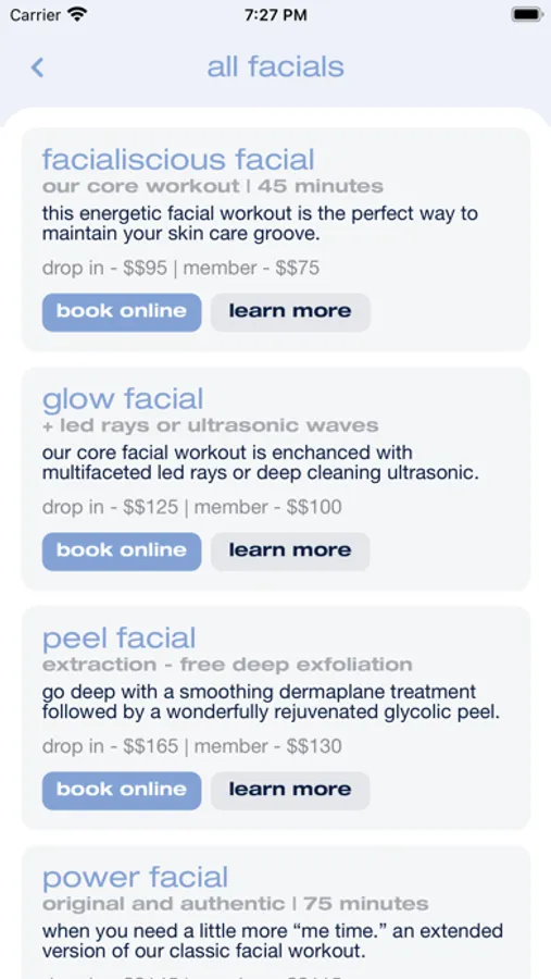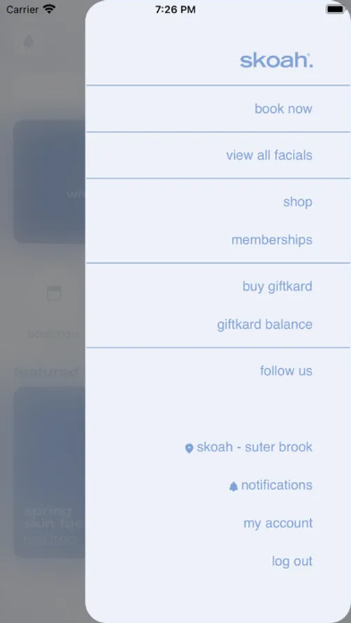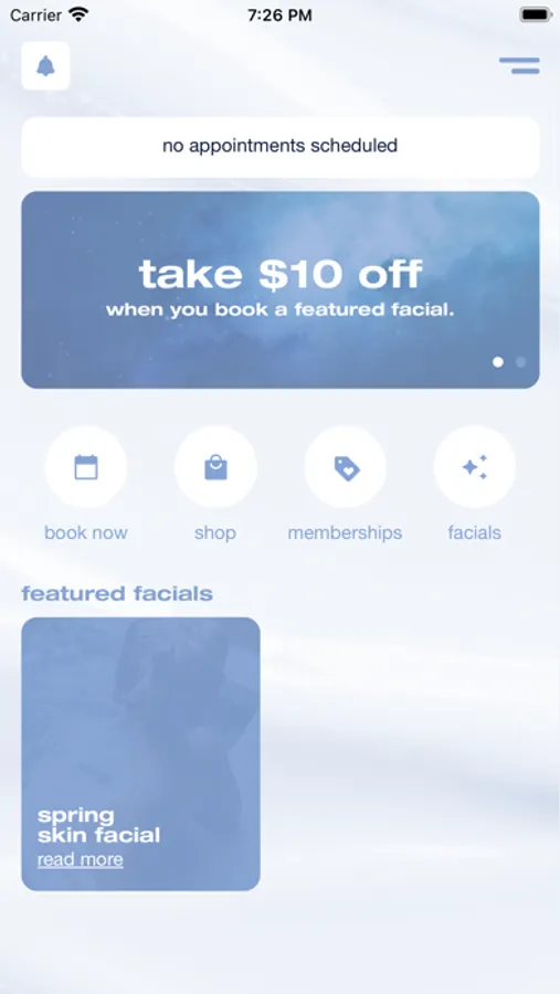 - check out featured facials and in app promos