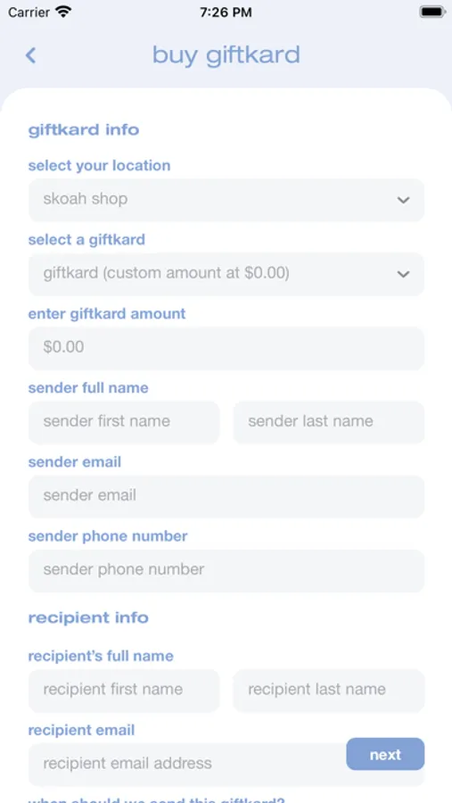 - purchase and view giftkards
