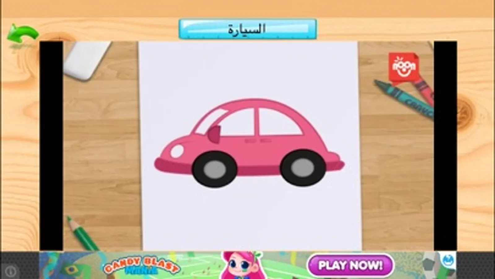 تعلم الرسم - برنامج التعليم الرائع المبسط للاطفال حيث يشاهد الطفل و يتعلم رسم عدة أشكال و تلوينها.