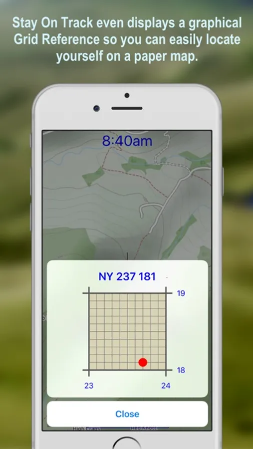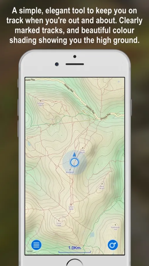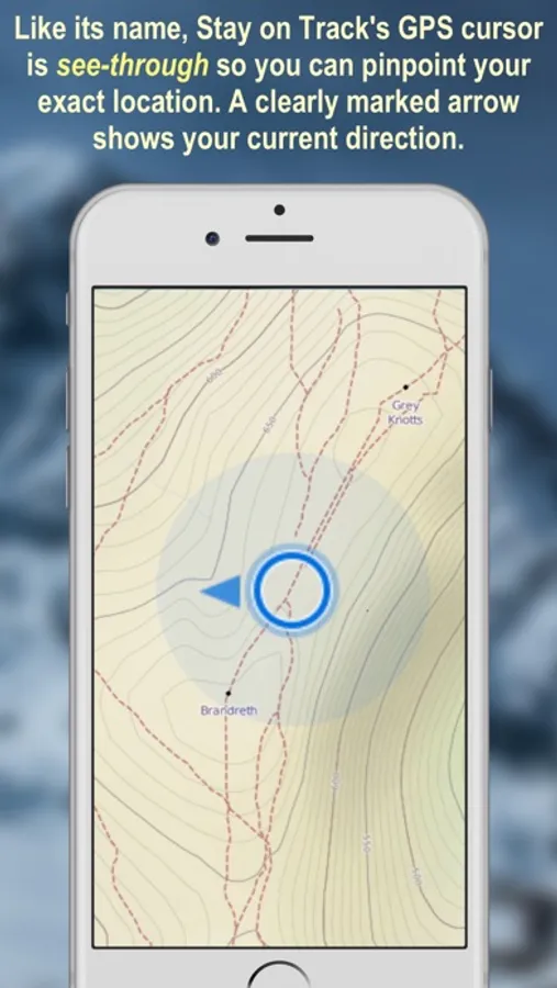 Most mapping apps show your position with a dot, but Stay on Track uses a see-through marker so you can see exactly if you’re on the right track or not. Stay on Track also clearly shows which direction you're facing.
