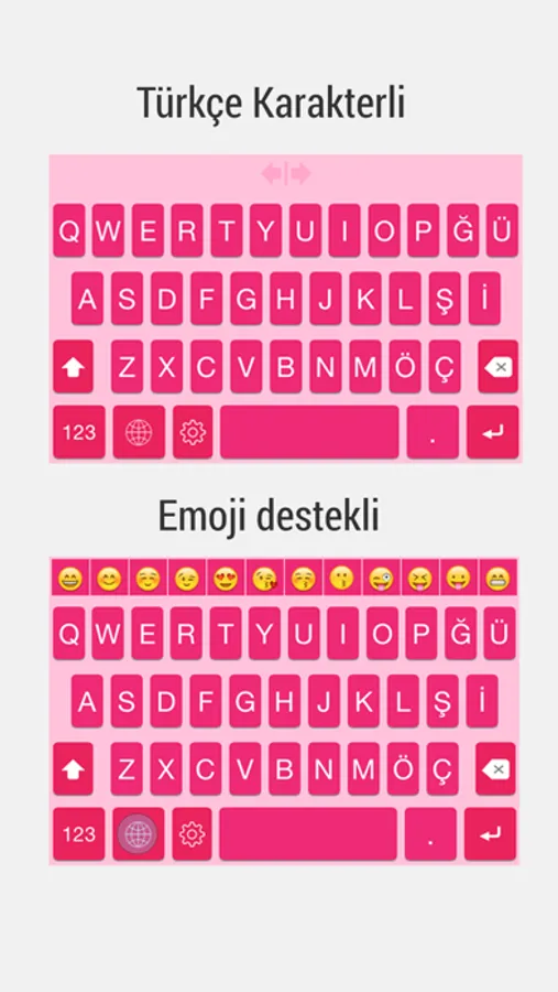 - 100e yakın Emoji desteği! Emoji göndermek için klavye değiştirmek zorunda değilsiniz. Dünya tuşuna basınca emojiler klavyenin üzerinde görünür, hem yazıp hem emoji ekleyebilirsiniz. TÜM EMOJİLER İÇİN PARMAĞINIZI LİSTEDE SOLA KAYDIRIN.