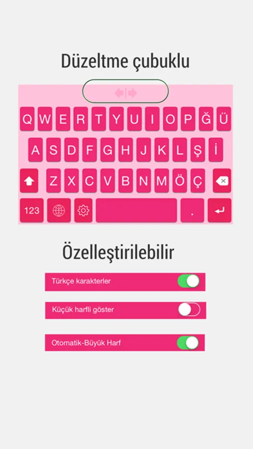 - Türkçe karakterlidir. Dilerseniz ayarlardan onları çıkartabilirsiniz. Harflerin üzerine basılı tutarak o harfin noktalısını (Türkçe halini) kolayca ve kaydırmakla uğraşmadan girebilirsiniz.
