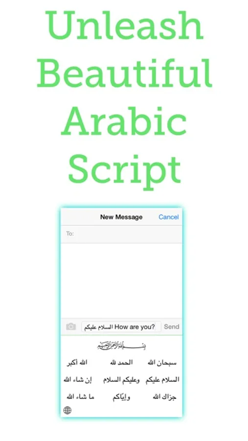 Enhance your conversations with beautiful Arabic script of common Islamic phrases built right into your iPhone's iOS8 keyboard! All brought to you in an app that's just as simple, elegant and gorgeous as the language itself.