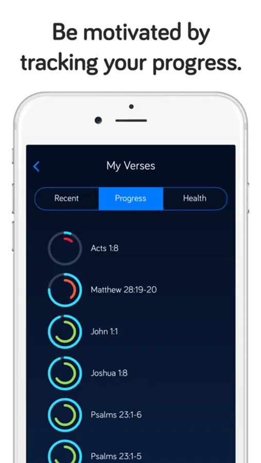 Then, after memorizing a passage, Verses tracks your MEMORY HEALTH to help you maximize retention while minimizing workload.