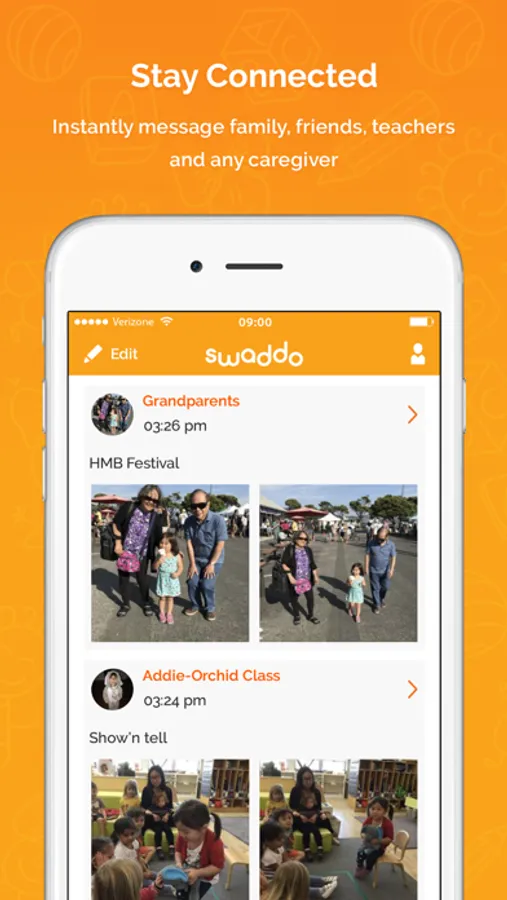 • Groups – Easily create group threads for ongoing, personalized messaging. Individuals or groups may include family, friends, educators, class parents, nannies, babysitters, pediatricians, absolutely anyone!
