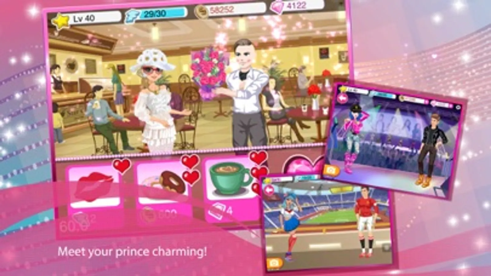 Experience fantasy royalty in this chic simulation app filled with style, romance, and more! With a little hard work and determination, you could be the next singing, modeling, or acting sensation! Strut your way to the top and grace the covers of various fashion magazines. Earn coins and diamonds to buy fabulous clothes in the mall and be the trendiest of them all. Want to grab special finds? Head down to Star Wow for new stylish items!