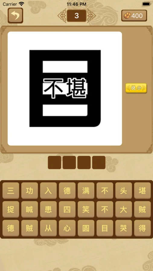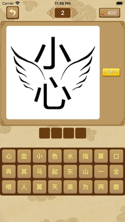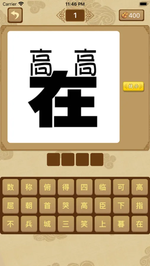 游戏画面古典雅致,精美绝伦。游戏通过一张图片来猜测相关的成语。