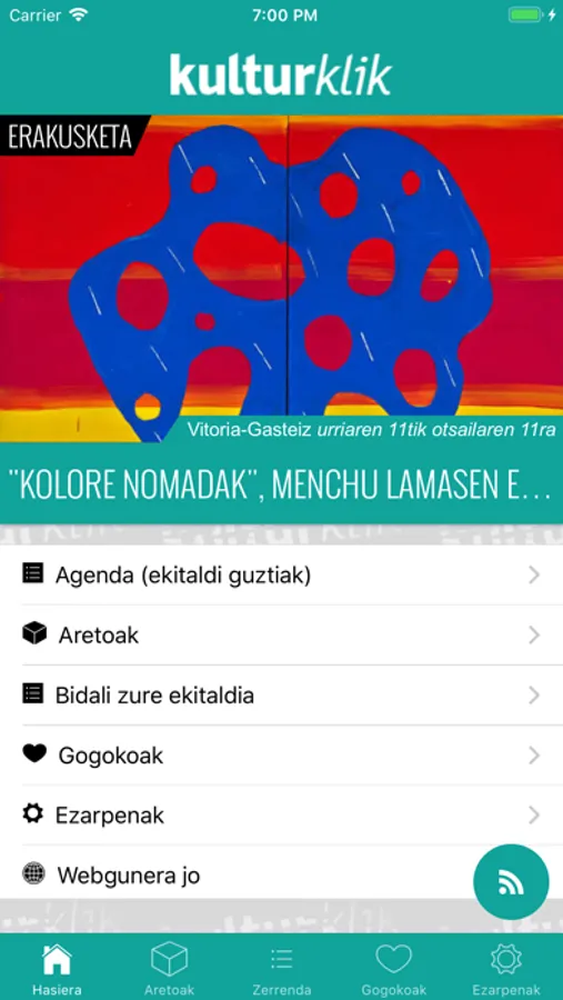 Aplikazio honen bidez Kultura Agenda kontsulta daiteke. Bertan, euskararen lurralde eremuko aurrez aurreko kultur jarduerak eta ekitaldiak biltzen dira.