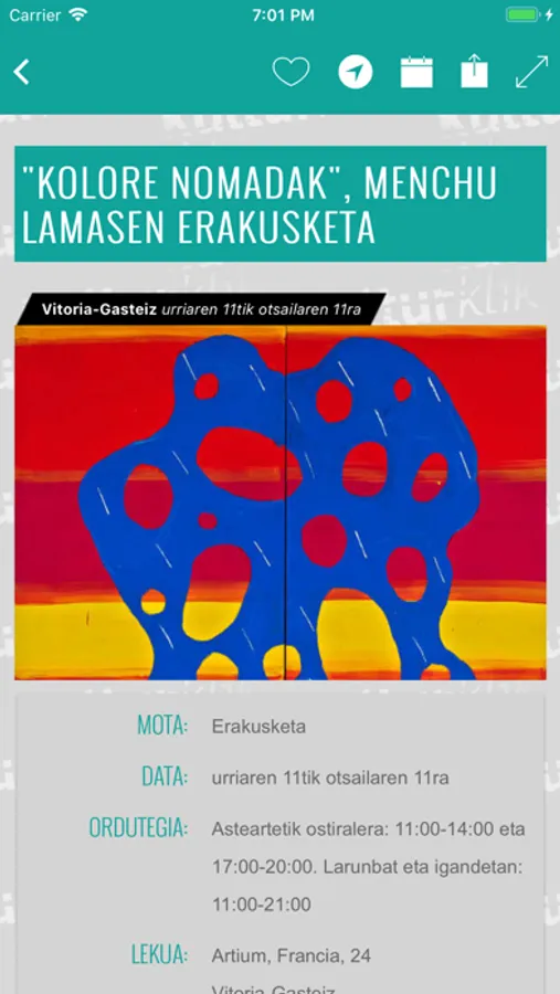 Con esta aplicación podemos consultar toda la Agenda Cultural. En ella se incluyen todas las actividades culturales presenciales y eventos del ámbito lingüístico del euskera.