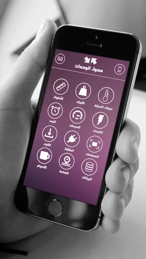 محول الوحدات هو تطبيق مفيد جداً يسمح لك بالتحويل من وإلى وحدات مختلفة في كثير من الفئات