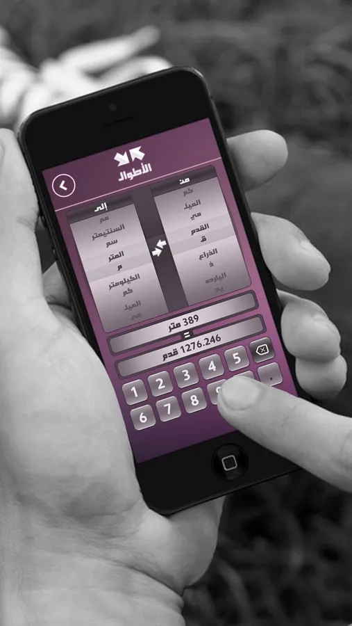 فقط اختار الفئة من الشاشة الرئيسية ثم قم باختيار اسم الوحدات واكتب الرقم مباشرة ستتم عملية التحويل بشكل سهل وسريع