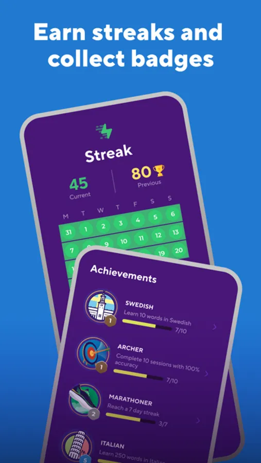 Learn new languages while playing games. You can become fluent, learn vocabulary and common phrases in Hebrew, Arabic, Russian, and Hindi. Set goals, unlock achievements, and get rewards!
