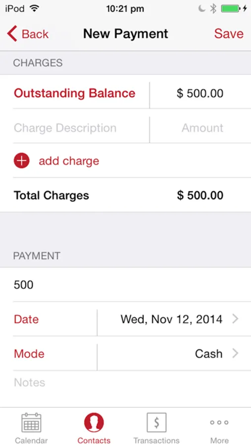8. Notes can be made for individual appointments or payment