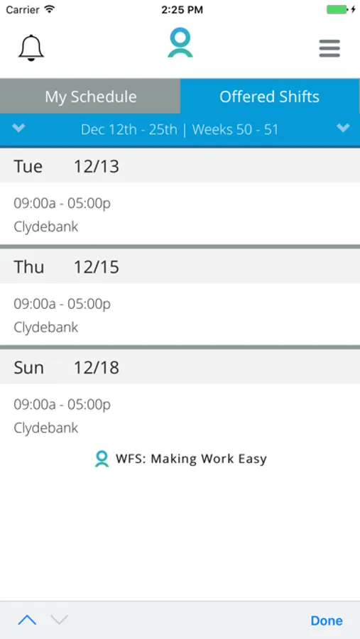 This app connects to your employer’s scheduling system so that you know when and where you are working.