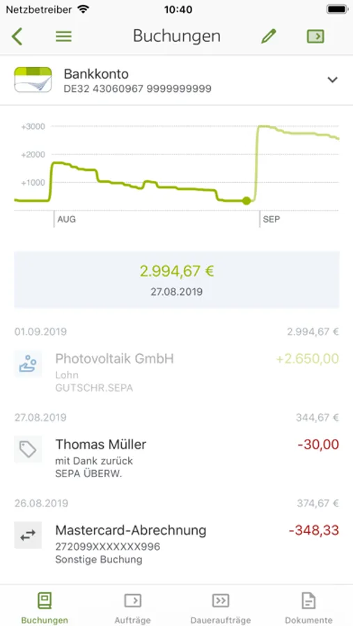 • Überweisungen, Terminaufträge, Daueraufträge, Sammelüberweisungen, Lastschrift, SEPA-Buchungen, Auslandsüberweisung