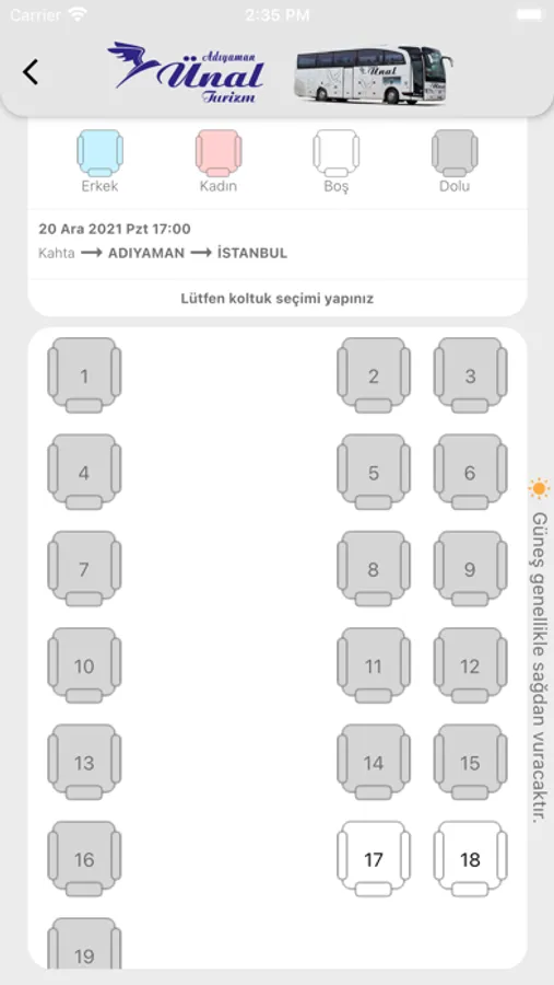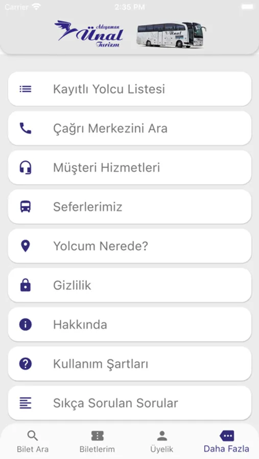 Adıyaman Ünal Turizm'in şehirlerarası ulaşım biletlerinin satılmasını sağlayan bir iPhone uygulamasıdır.