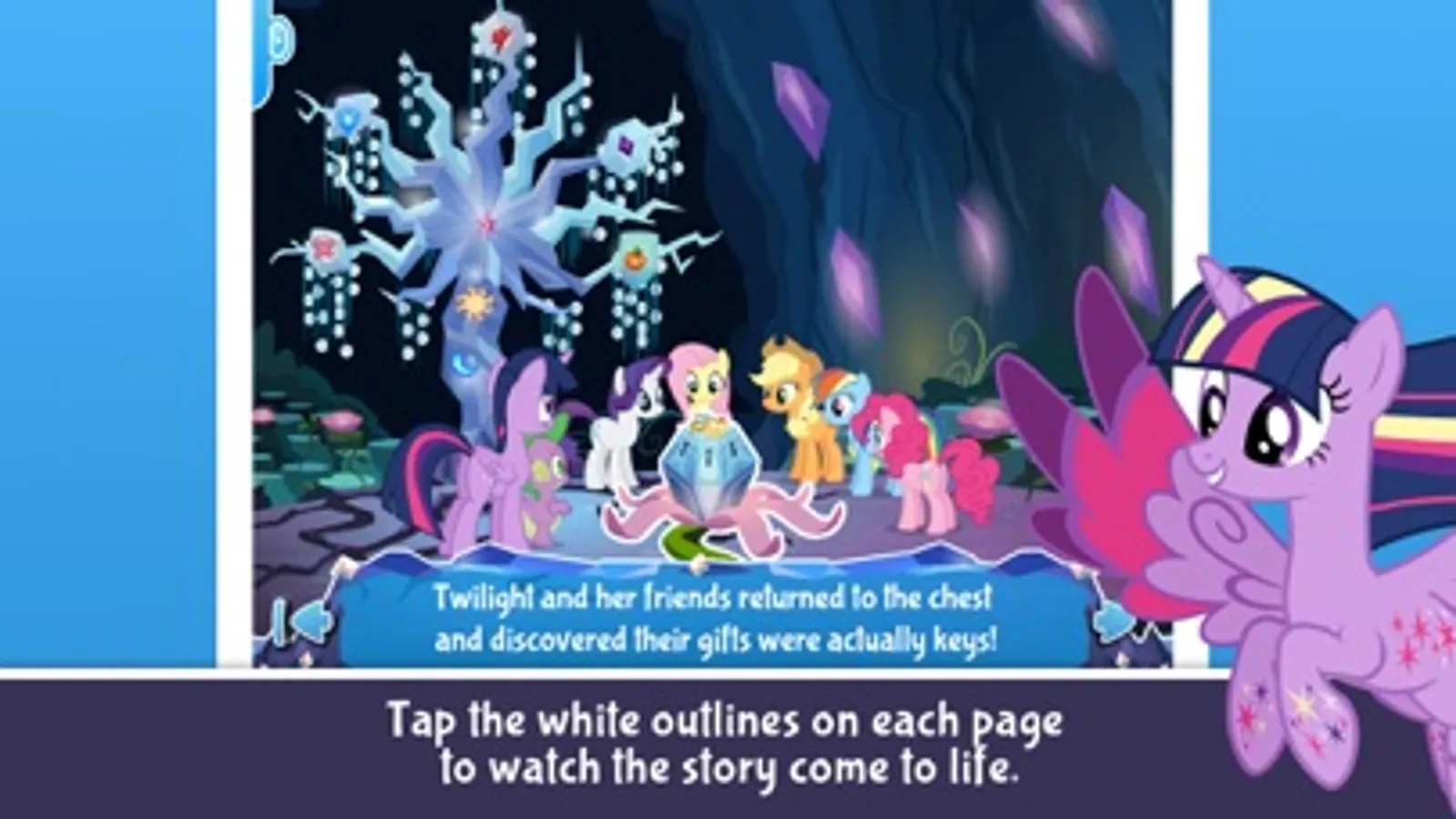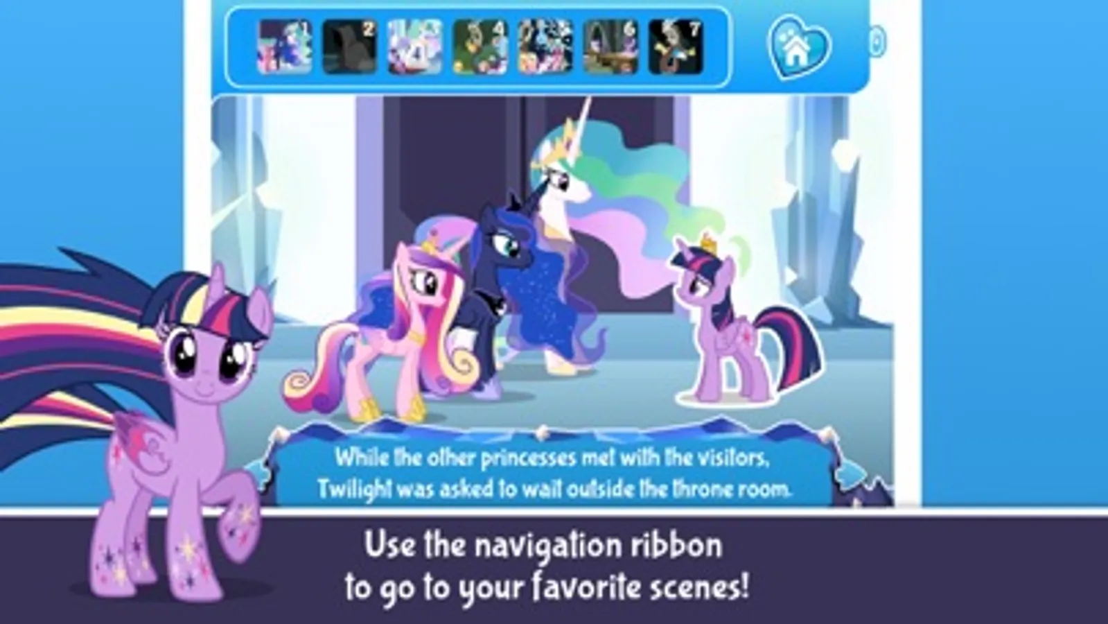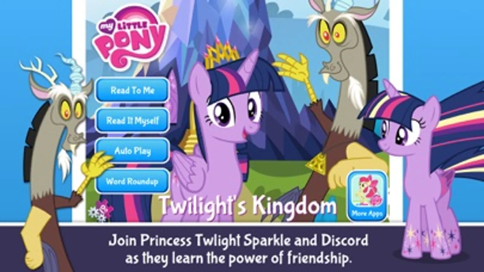Being a princess doesn't come with an instruction manual, but neither does becoming a hero! In TWILIGHT’S KINGDOM, the first ever MY LITTLE PONY deluxe storybook app, Twilight Sparkle is Equestria’s newest princess, and she’s looking for a way to prove herself worthy of the title. When a villainous centaur starts stealing magic from Unicorns throughout the land and even threatens to consume the Alicorn princesses’ magic, Twilight wants nothing more than to track down Lord Tirek, but someone else is chosen in her place. Discord! Twilight needs help from her closest friends, and a surprise ally, to restore magic to Equestria and unlock a kingdom fit for a princess.