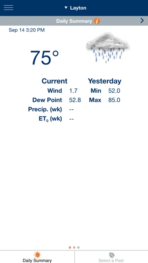 • Select your location and immediately gain access to current and the prior day’s weather conditions (temperature, dew point, wind speed, and precipitation for the week)