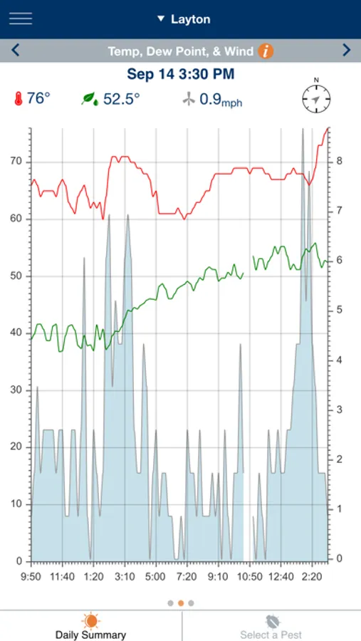 • Graphs that display the history of pest-specific degree days for up to 3 months.