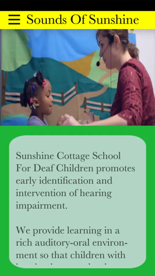 Sounds Of Sunshine is an app written by Sunshine Cottage School For Deaf Children. The school is located on San Antonio, Texas and was founded in 1947. It accepts children that are hearing impaired and also typical hearing children.