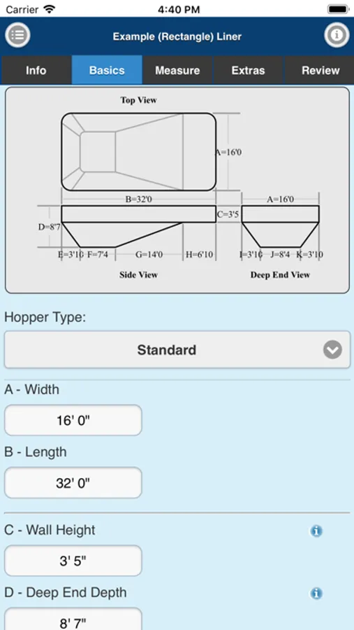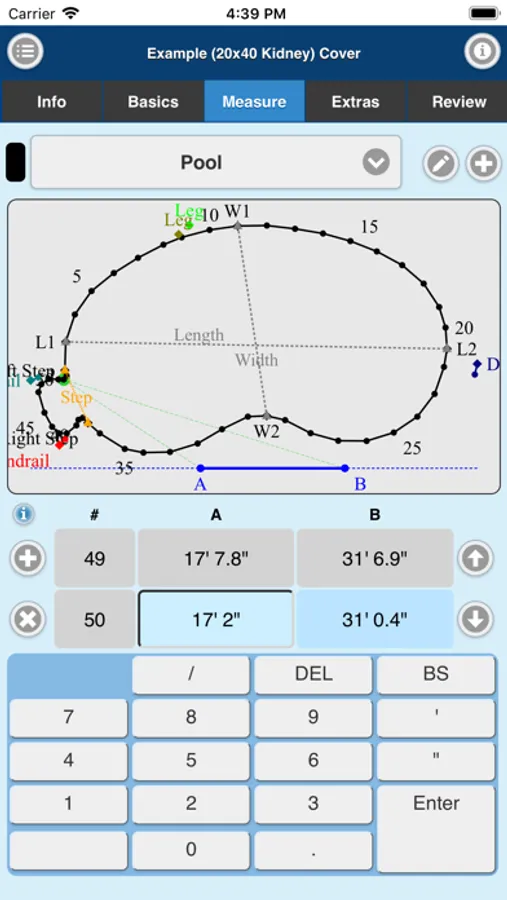 Measuring for replacement liners and safety covers made easy. Imperial On Point Measuring App accepts A-B triangulation data for its measurements. You can also submit Rectangle or Oval Pool Shape projects. Simply measure, enter points into the Imperial On Point Measuring App, select the material and submit for quote or order.