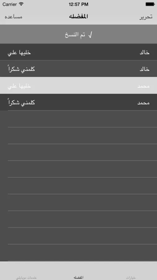 ٢ - قسم المفضله لاضافة الخدمات المستخدمه بشكل مستمر