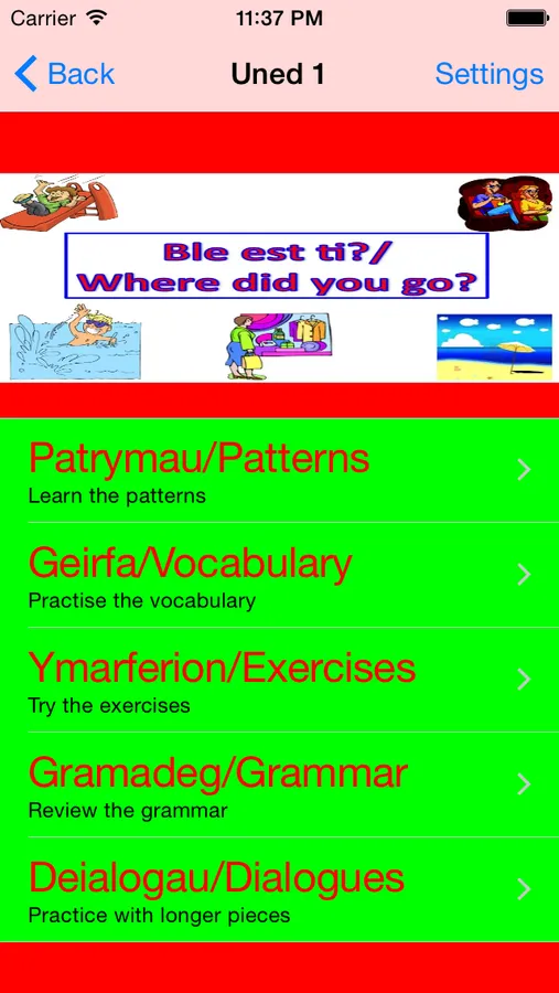 This App provides lessons teaching school pupils how to talk about their holiday.