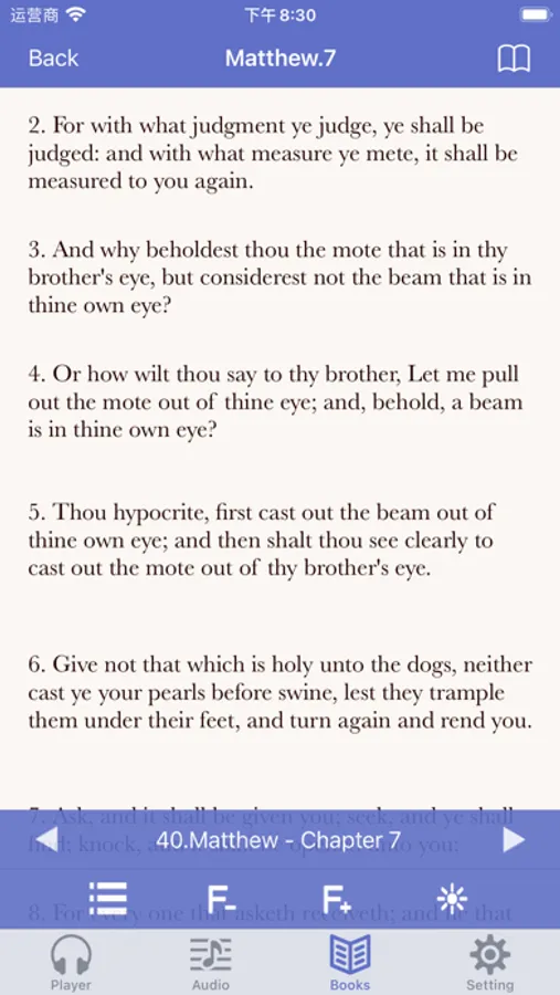 This program allows you to listen the entire Old Testament and New Testament in audio form. All the audio is embedded in the software, so you can listen the Holy Bible at any time, without the need for a wireless connection.