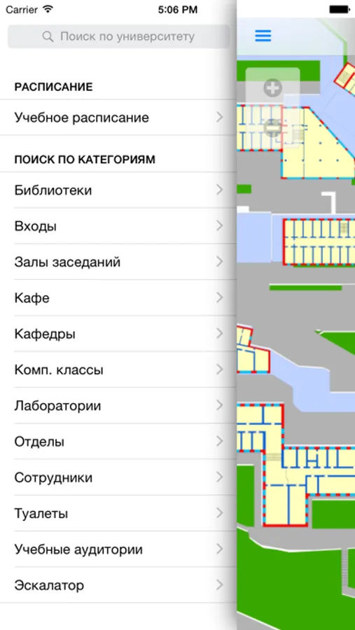 • найти учебную аудиторию, деканат, кафедру, спортзал или кафе;
