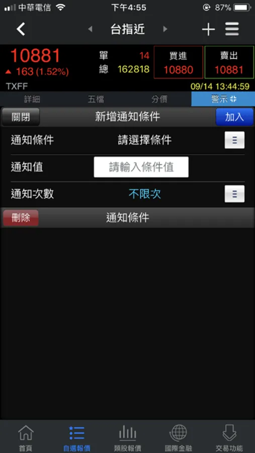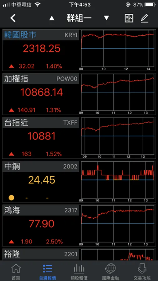 -個人化專屬自選報價功能,提供五個群組,150檔商品設定功能。