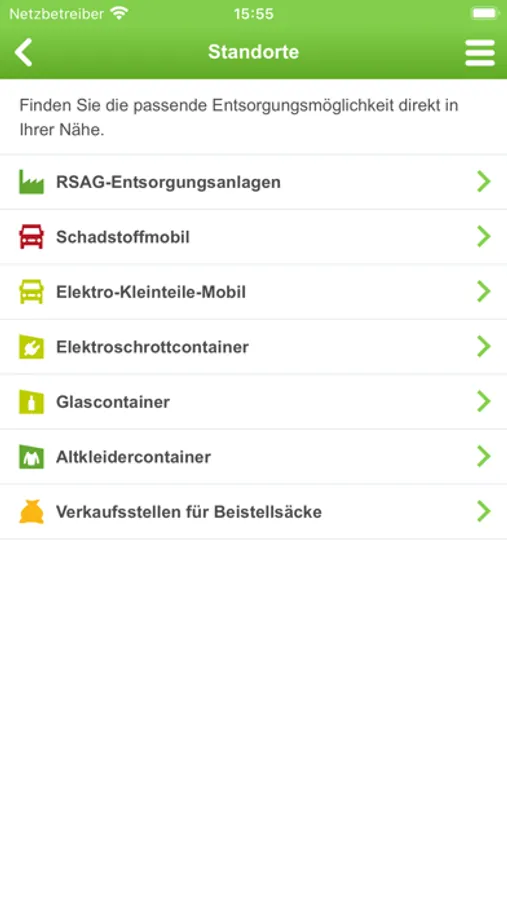 - Finden Sie die passende Entsorgungsmöglichkeit direkt in Ihrer Nähe und nutzen Sie die praktische Navigationsmöglichkeit: RSAG-Entsorgungsanlagen, Glascontainer, Altkleidercontainer, Elektroschrottcontainer, Verkaufsstellen für Beistellsäcke