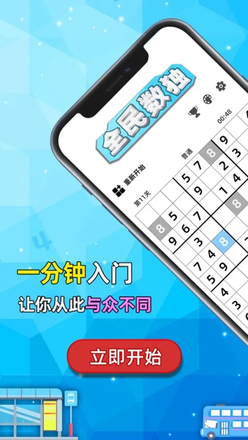 《全民数独》是一款简洁优雅的数字益智类单机游戏。特设“一分钟入门教程”,轻松上手!