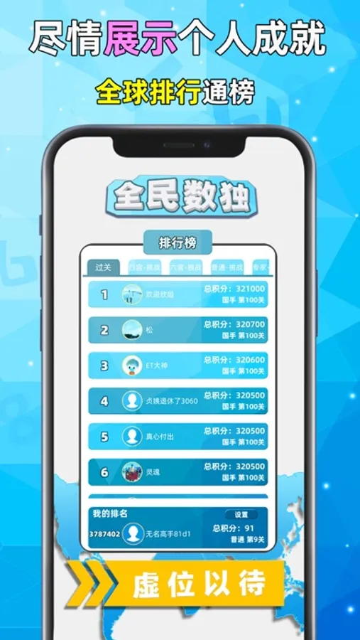 本作不仅支持标准的9宫数独,而且支持4宫、6宫等入门级玩法。难度线性递增的题库,以8大关,100小关的形式呈现,覆盖入门到竞赛级难度。