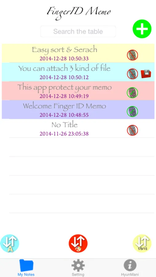 12. Memo list can be sorted by title name order, created date order, modified date order and color order.