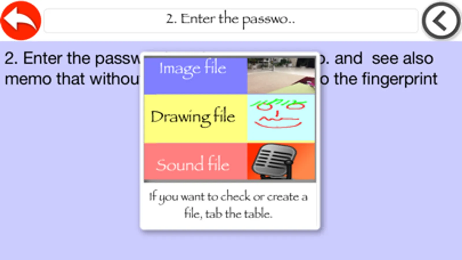 2. Enter the password, and see your memo. and see also memo that without a password entered into the fingerprint
