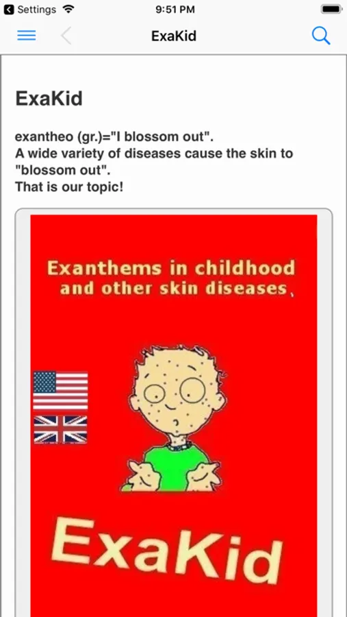 This App E x a K i d , "exanthems in childhood" and other accompanying diseases help visually to diagnose common and uncommon conditions and diseases encountered in clinical practice.