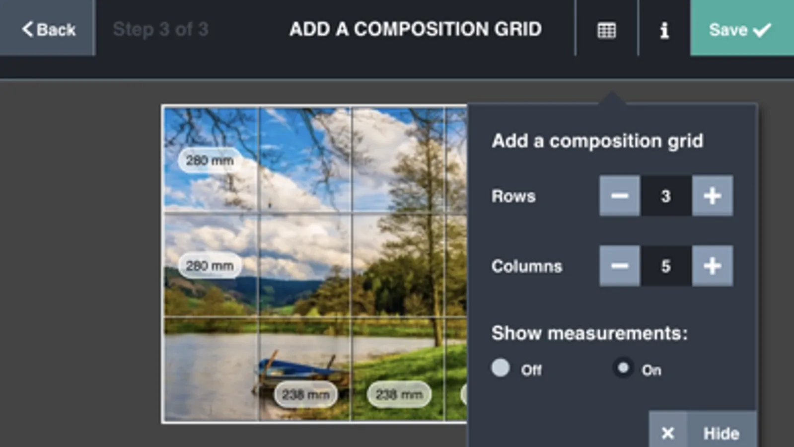 Translate your photos into perfect compositions with Jackson's ArtGrid for iPad and iPhone. ArtGrid takes the hard work out of the traditional grid method of composition and produces precisely scaled and cropped images, ready to apply to your canvas or paper. Capture and import images and compose your next masterpiece with a range of zoom and crop options, grey-scale filter for examining values, and apply a grid specific to your surface's dimensions for accurate translation.