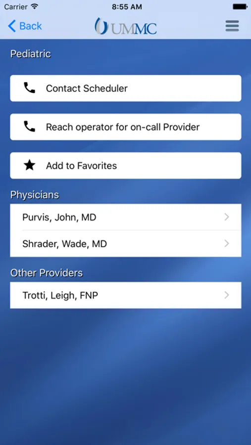The University of Mississippi Medical Center 4Referrals app is designed to give Mississippi physicians and advanced practice providers an easy means to refer patients to UMMC hospitals and ambulatory clinics. The app lists current UMMC providers by specialty. 4Referrals also allows users to contact on-call providers for specific specialties. Menu features include options such as favorites, children’s services or adult care.