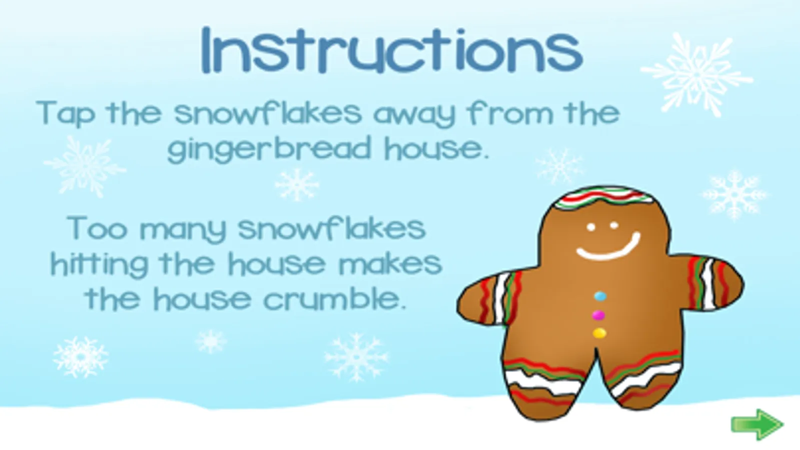Keep the snowflakes from hitting the gingerbread house. Too many snowflakes hitting the house will crumble it to the ground!