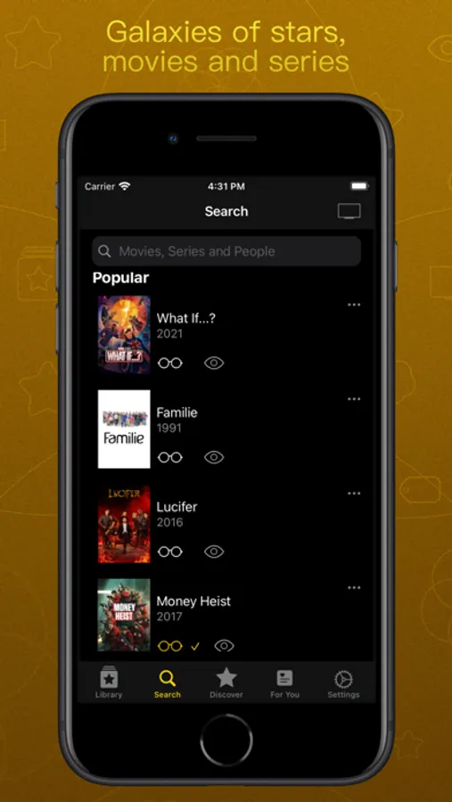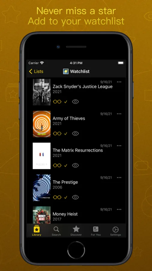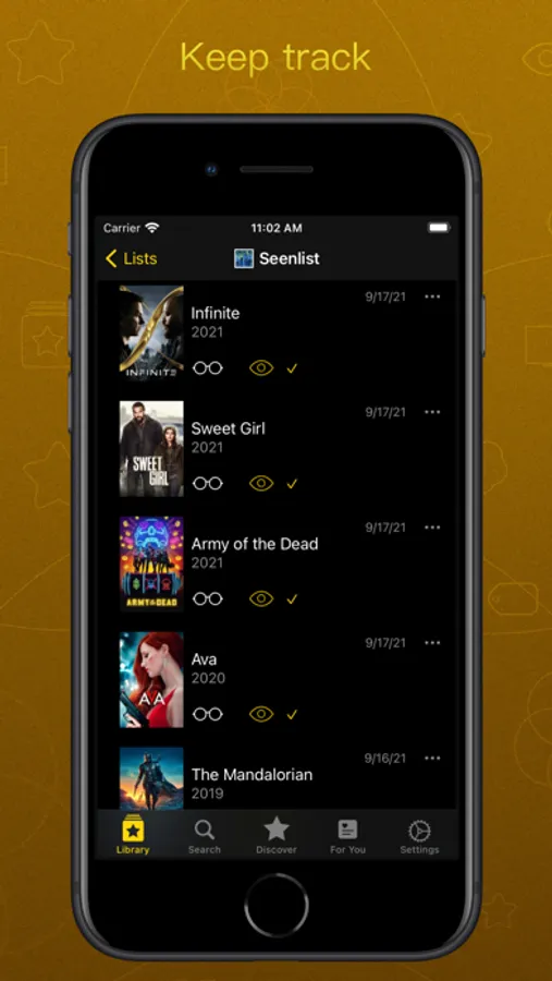 • Keep track of the movies you want to watch. Then mark them as seen, and rate them. Create your own lists and curate content you love.