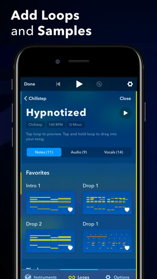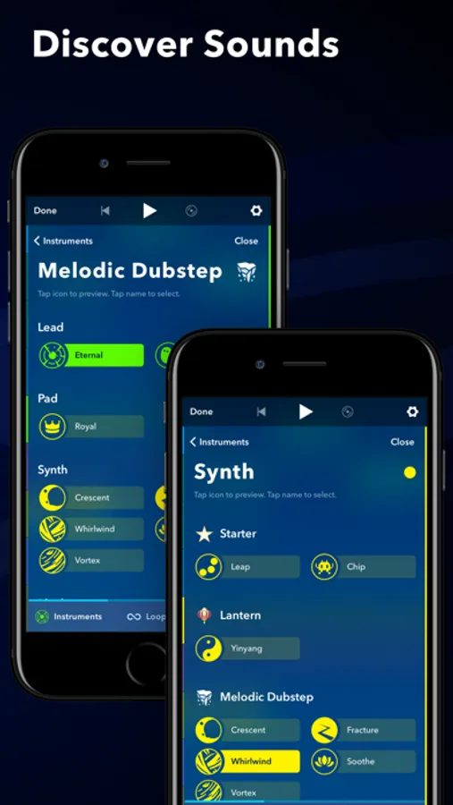 From simply adding a note to complex multi-note editing, each interaction was carefully designed with touch in mind. And with over 300 instruments available to Members, you can quickly try out different sounds and find your style.