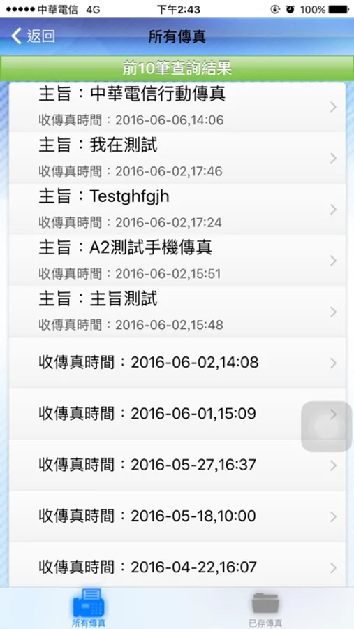 1. HiNetFax APP收傳真僅限HiNet網際傳真提供的Fax2Fax傳真或使用Web版(https://mobile.hinetfax.hinet.net/Web2App/)發送之傳真,不能接收非屬HiNet網際傳真所發的其他傳真。
