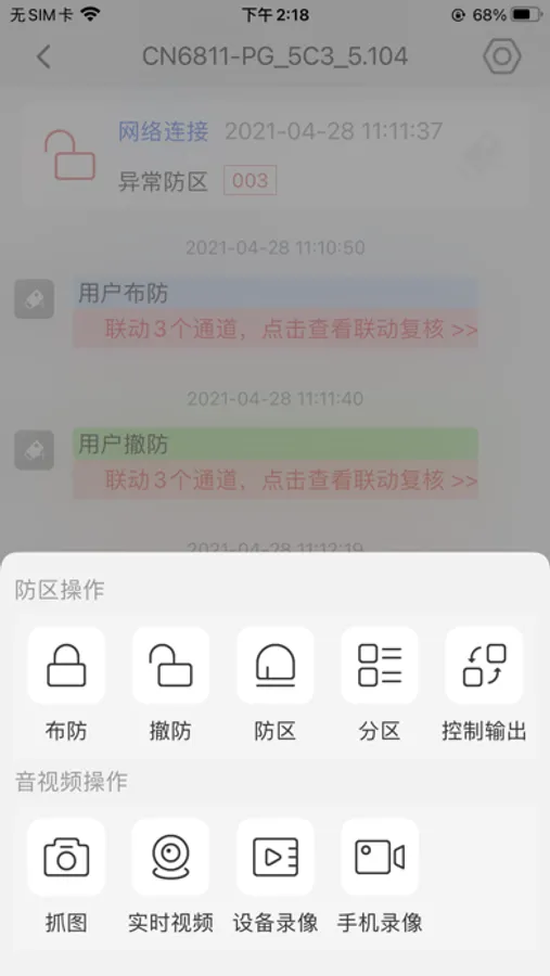 (4)远程控制:对拥有权限的用户,随时可以对报警主机/全警摄像机等进行布防、撤防、旁路、取消旁路,云台控制等操作,也可以远程控制输出