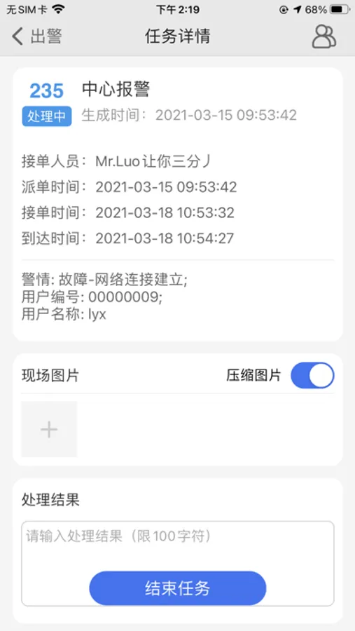 5、完善的评价系统:用户可对于案件(出警/维修/巡检)的处理结果做出评价,并进行电子签字
