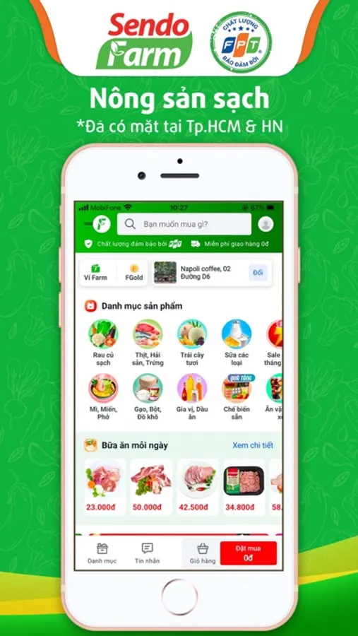 Đặc biệt, ra mắt Sendo Farm - dịch vụ Đi Chợ Kiểu Mới - An Toàn & Tiện Lợi được bảo trợ bởi FPT. Sendo Farm chuyên cung cấp mặt hàng rau củ và trái cây tươi ngon chuẩn VietGAP giá siêu ưu đãi mỗi ngày. Sendo đã xây dựng hệ thống điểm nhận hàng ngay gần nhà bạn. Đặt hàng trước 16h mỗi ngày nhận hàng ngay ngày hôm sau. Hoàn tiền 100% nếu sản phẩm lỗi.