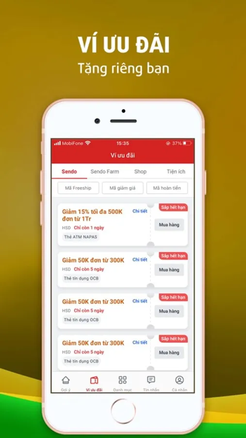 - Vào “Ví Ưu Đãi”: Nhận ngay những ưu đãi Sendo dành riêng cho bạn.