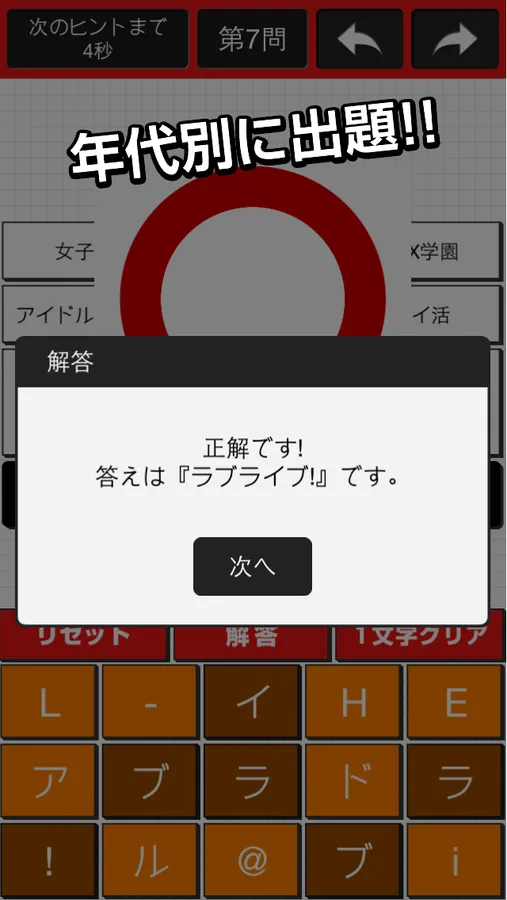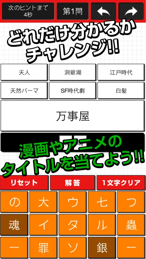 "~ Age another manga anime associative King ~ fill-in-the-blank quiz" is an app to answer the anime and manga titles that come up from the words.